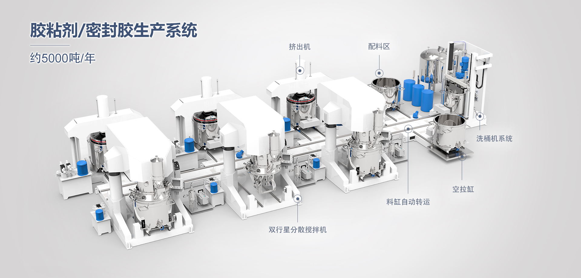 專(zhuān)用于膠粘劑、密封劑等高粘度物料攪拌、混合、反應(yīng)等工藝的成套生產(chǎn)線(xiàn)